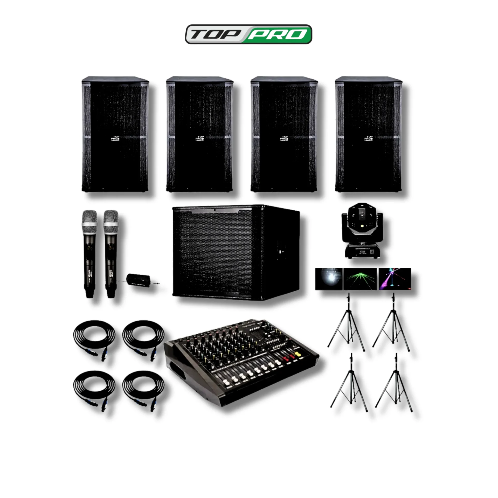 The Party Sound System for Event Planners is a complete, all-in-one audio and lighting package designed to support professional events of any scale. This system includes – 4P Speaker 15 Inch, 1P Subwoofer 18 Inch, 1P 8 Channel Mixer, 1P Dual Wireless Microphone, 4P Speaker Stand, 4P Cable 10m, 1P Moving Light —giving planners everything they need to run a powerful, well-balanced event setup without purchasing additional equipment. Whether it’s a wedding, corporate function, indoor ceremony, DJ party, or outdoor gathering, the system provides clean sound, deep bass, and substantial visual impact.