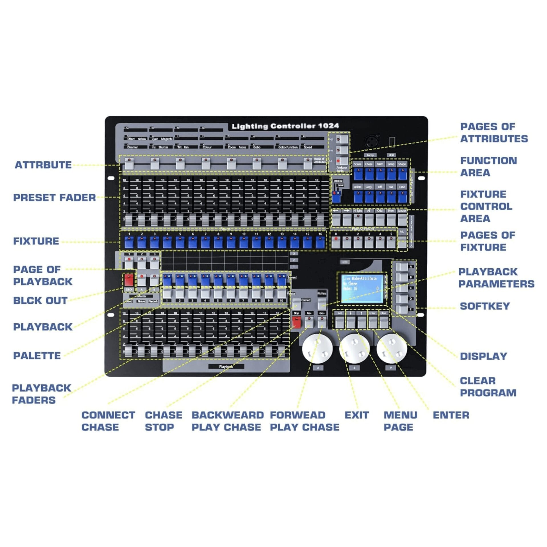 Equipped with a 3-pin connection cable, reversible sliders, dimming function, and power-off memory, this TOP PRO 1024 DMX Controller integrates easily with a wide range of stage lights, including PAR lights, moving heads, and LED strips.